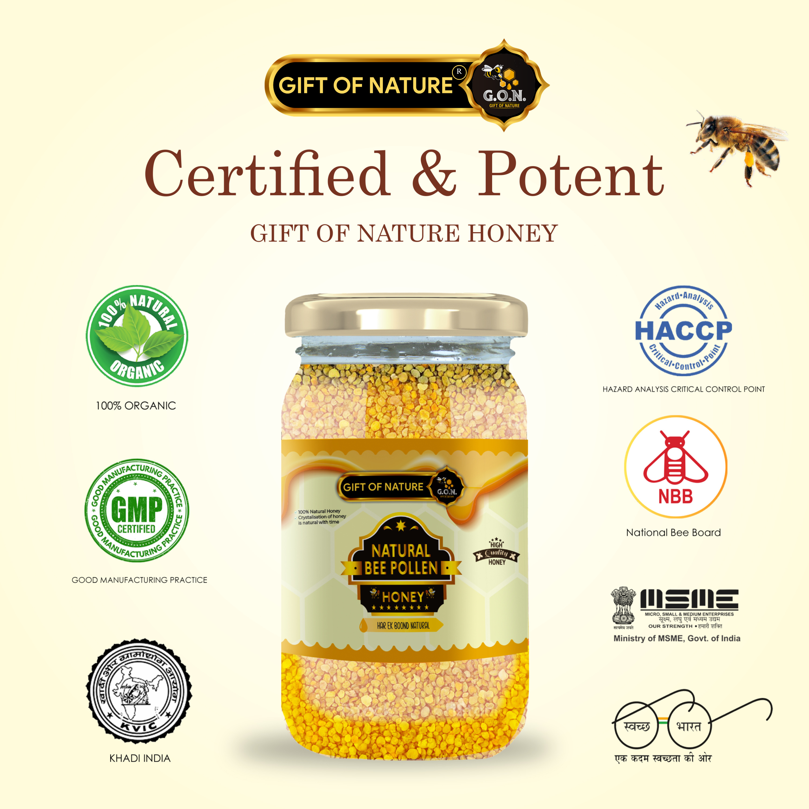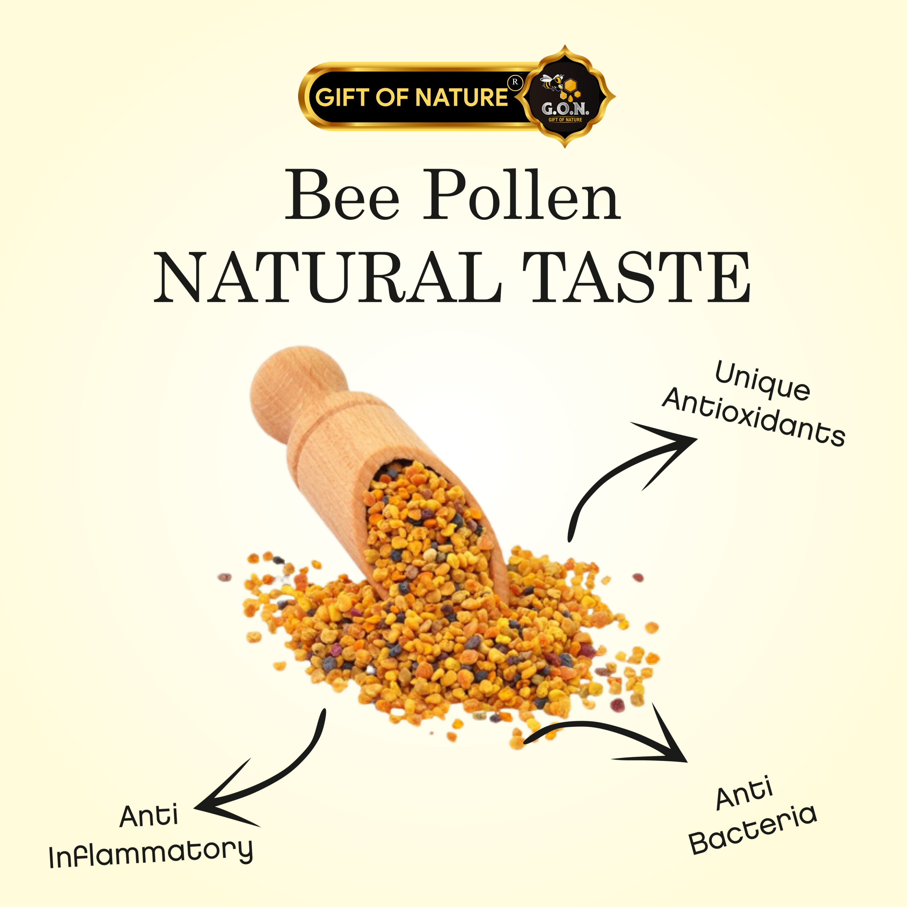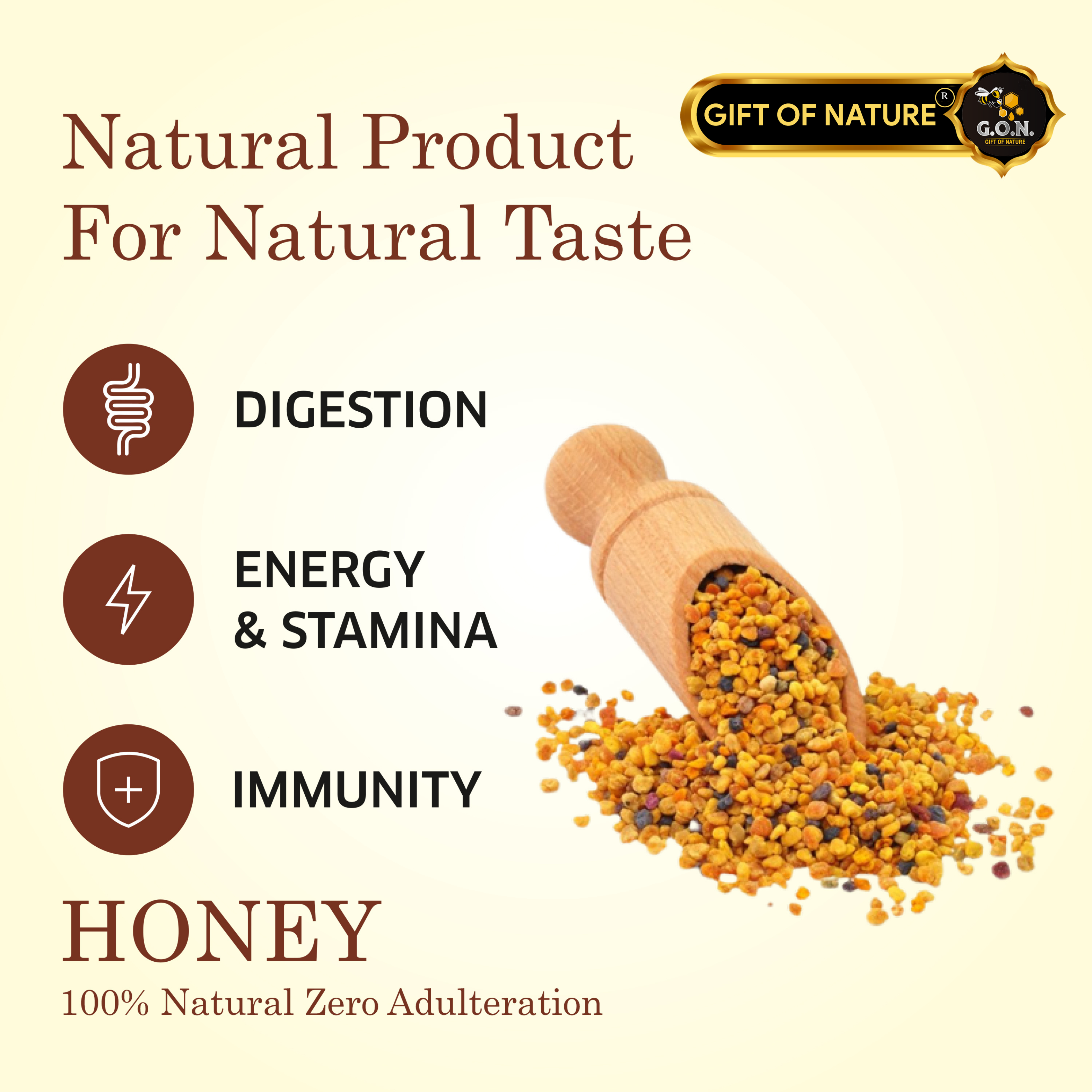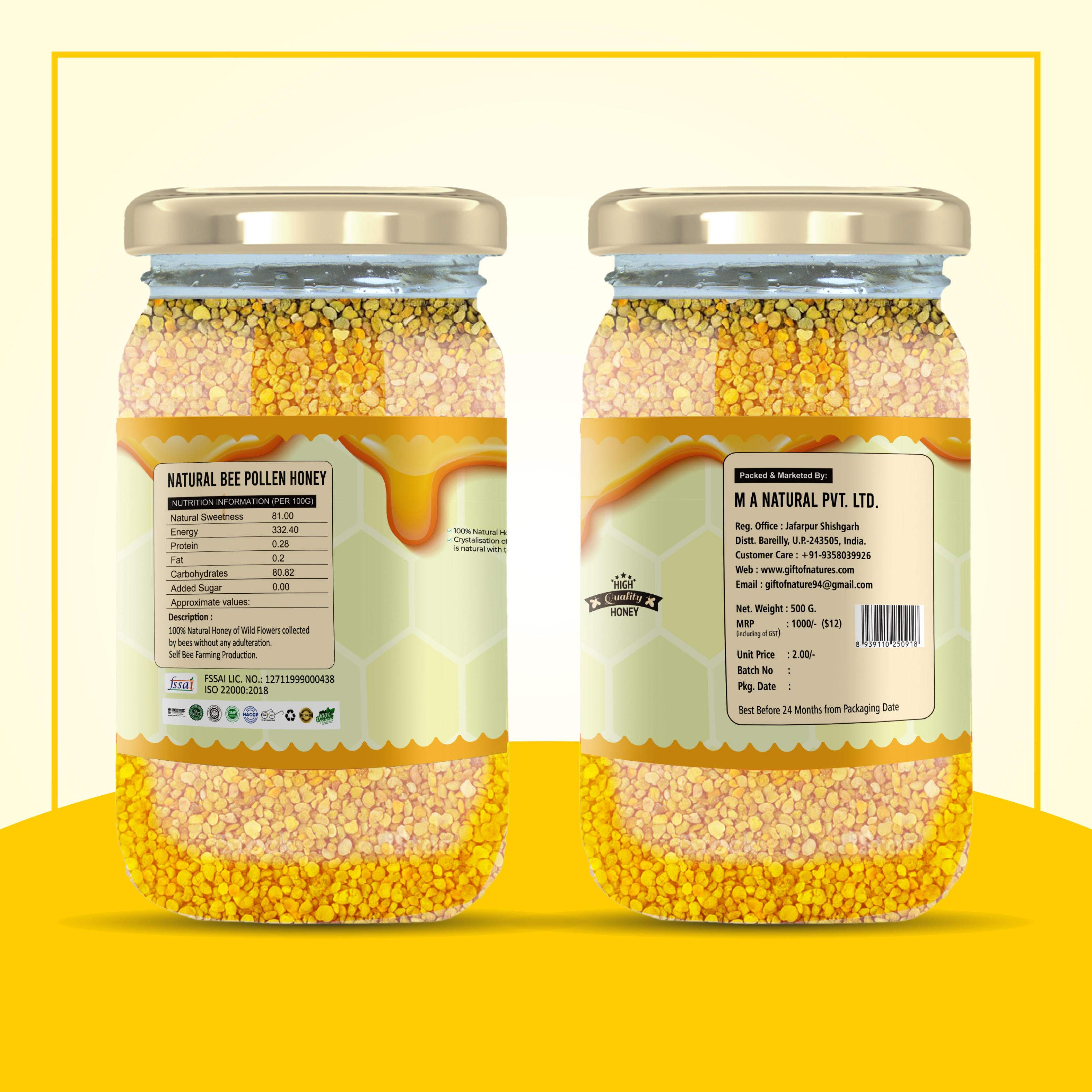100% Pure and Natural Bee Pollen Self Bee Farm Production Collected By Bee With Flowers.