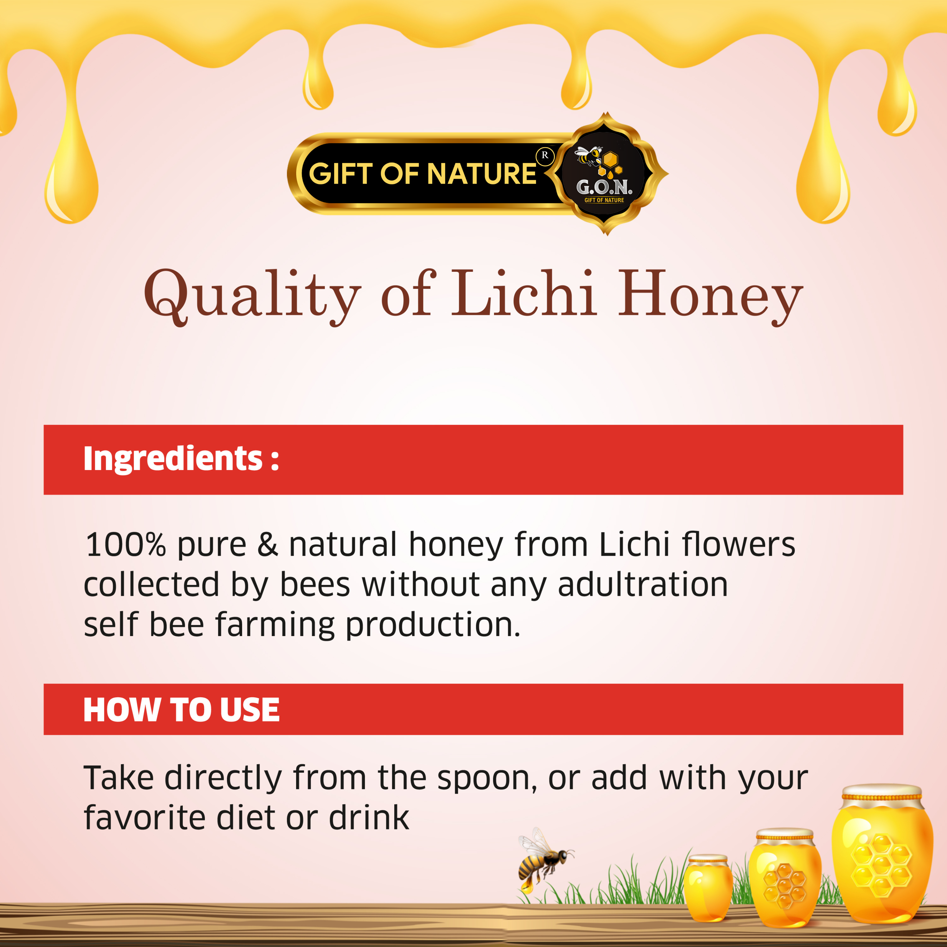 100% Pure and Natural Unprocessed Raw Honey Self Bee Farm Production Collected By Bee With Litchi Orgenic Flowers.