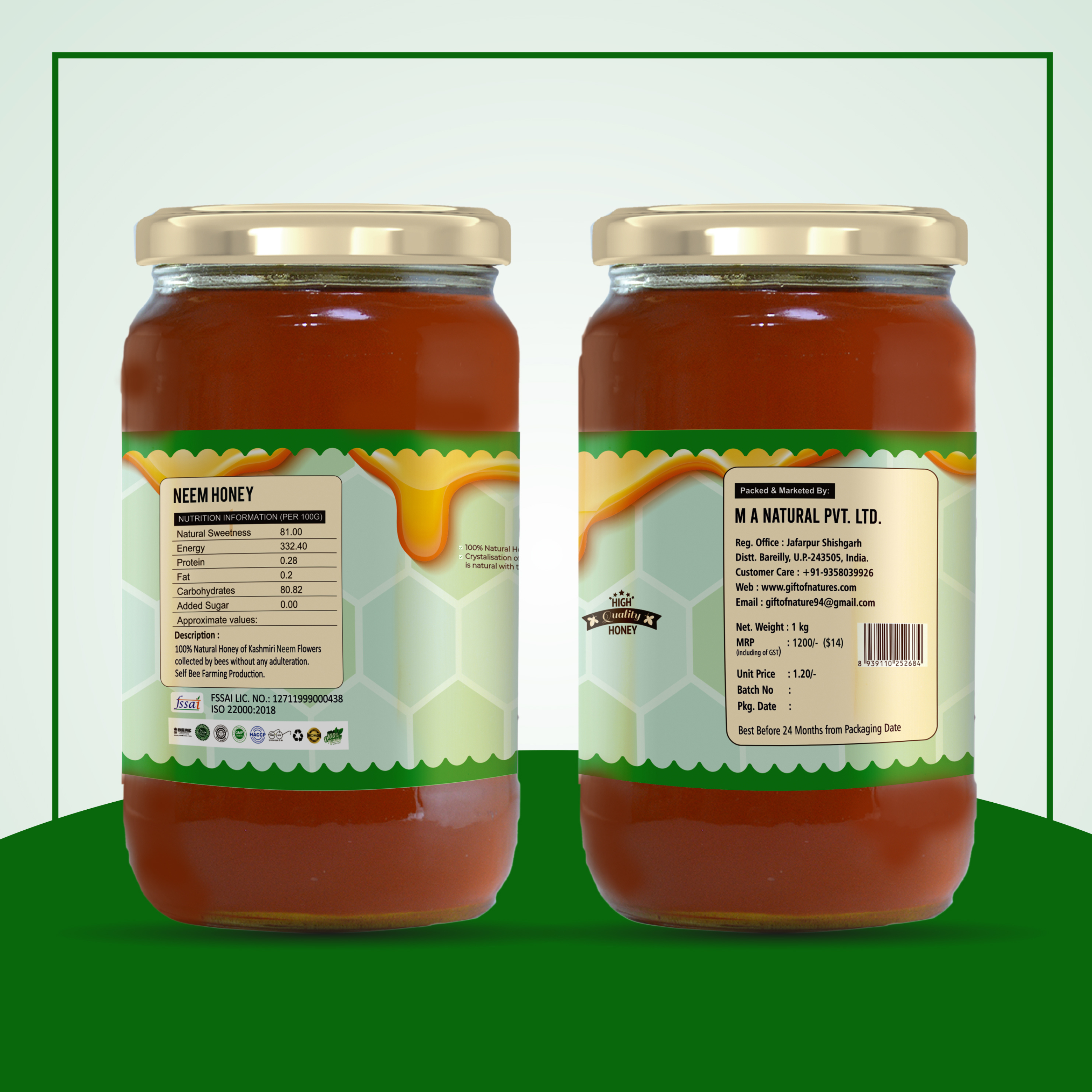 100% Pure and Natural Unprocessed Raw Honey Self Bee Farm Production Collected By Bee With Natural Neem Flowers.